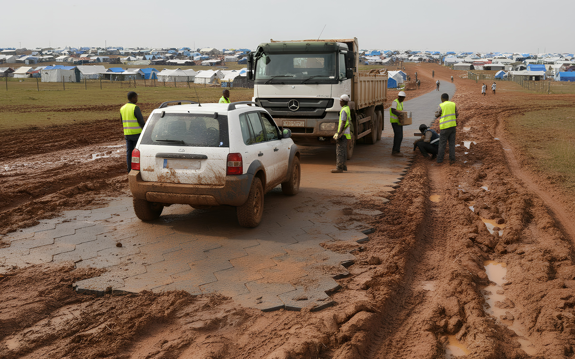 With a unique surface design that improves heat circulation to the body, these tiles offer real protection against rain, snow, and winter cold – making them the most reliable flooring solution for humanitarian camps worldwide.
